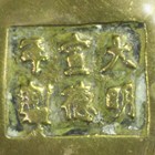 Two Chinese polished bronze tripod censers, mark of Xuande but early 20th century, each of compressed circular form and engraved with dragon, phoenix and flowers, cast stylized four-character mark to base, diameters 15.5cm and 16cm (one with small hole to base), together with a small plain bronze censer, cast six-character mark of Xuande to base, width across handles 7cm.