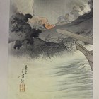 Muzuno Toshikata (1866-1908) - a Japanese polychrome oban triptych woodblock print, circa 1894, depicting sergeant Kawasaki Iseo escaping from a Chinese encampment during the Sino-Japanese War, 36cm x 70.5cm, framed and glazed.