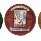 A collection of 25 J. Baines cards, each in the form of a football, including Accrington Stanley, Dundee, Hyde Park, Leeds Ladies, Leeds United, Plymouth Argyle and Stockport County.