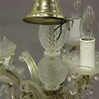 A pair of mid-20th century clear glass mounted twelve-light chandeliers, height 50cm, width 55cm, together with two other ceiling lights.