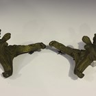 A pair of late 19th century French cast gilt bronze chenets with fairy headed finials and scroll supports, height 20cm, width 23cm.