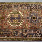 A large Karajar runner, North-west Persia, mid-20th century, the pale terracotta field with a column of hooked guls, within a charcoal flowering vine border, 446cm x 114cm.