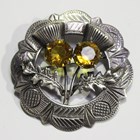 A Victorian silver caddy spoon with scallop shell shaped bowl and mother-of-pearl handle, Birmingham 1848 by John Tongue, length 10.5cm, together with a Scottish silver and citrine thistle brooch, Edinburgh 1962, diameter 4.5cm, a silver and leather mounted hip flask (lacking detachable cup), a silver three-pence bracelet and a silver stand.