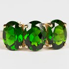 A 9ct gold ring, claw set with a row of three oval cut chrome diopsides, weight 2.5g, ring size approx J1/2.