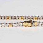 An 18ct two colour gold and diamond bracelet, formed as sections of three diamond set links in 18ct white gold, alternating with 18ct yellow gold divisions, on a snap clasp, import mark Sheffield 1994, weight 18.4g, length 18.5cm.