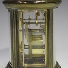 A late 20th century brass carriage timepiece with eight day movement, the dial inscribed 'Matthew Norman', the oval glazed case with swing handle, height 15cm, with a key.