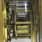 A late 19th/early 20th century French brass cased oval four glass mantel clock with eight day movement striking on a gong and mercury compensated pendulum, the dial with cream chapter ring and visible Brocot escapement, the oval case with bevelled glass panels, on a moulded base, height 26cm.