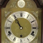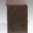 A 20th century George III style mahogany mantel clock with eight day chiming movement with platform escapement, the backplate with Westminster or Whittington chime selection, the breakarch dial inscribed 'An Elliott Clock', the case of Georgian bracket clock form with brass carry handle and feet, height 36.5cm.