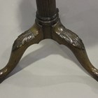 A George III mahogany tip-top wine table, the later dished top with pull-out coaster, raised on a finely stop fluted stem, on carved tripod legs, height 73cm, diameter 46cm (alterations).