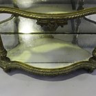A mid-19th century French giltwood and gesso three-tier console display table, inset with mirrored panels, height 98cm, width 109cm, depth 47cm.