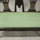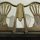 A late 19th century George III style mahogany two-seat settee with scroll arms and arched double splat back, carved with stiff leaf swags, on square tapering legs, height 94cm, width 112cm, depth 52cm.