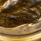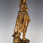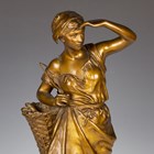 Eugène Laurent - a late 19th century French gilt patinated cast bronze figure of a fisherwoman holding a basket of seafood over one shoulder, the circular base bearing cast signature, height 55cm.