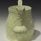 A large Peter Weldon Staffordshire creamware reproduction 30 litre jug, the body with overall relief moulded fleur-de-lis motifs, the underside bearing inscribed 'W', height 41cm.