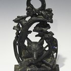 A 20th century cast iron doorstop in the form of a ram, width 24cm, together with another cast iron doorstop and a stoneware pestle and mortar.