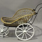 A late 19th/early 20th century woven wicker and wrought iron framed three-wheeled barrow, height 82cm, length 120cm (restoration).