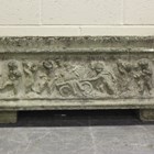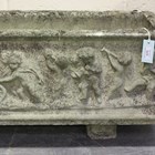 A large 20th century cast composition stone rectangular garden planter, the sides moulded with a band of putti, height 41cm, width 118cm, depth 35cm.