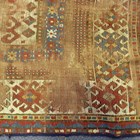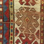 A Kazak Fachralo rug, West Caucasus, late 19th/early 20th century, the compartmentalized field enclosing hooked palmettes, within an ivory complimentary border, 220cm x 110cm (worn).