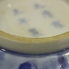 A Chinese blue and white export porcelain tea caddy, Kangxi period, the ovoid body painted with a seated maiden and attendant boy, height 9cm (lacking cover), together with a Chinese blue and white porcelain bowl, mark of Yongzheng but probably late Qing dynasty, painted with figures in coastal landscapes, underglaze blue six-character mark to base, diameter 13.4cm.