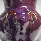 A Chinese flambé glazed pottery vase, 20th century, the flared neck above a bulbous body moulded in relief with three ram's masks, on an integral hexagonal base, height 21.5cm, together with a flambé glazed pottery vase, modern, modelled in relief with dragon and chilong, height 29cm.