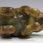 A Chinese carved agate figure of a rabbit, 20th century, modelled in a crouching pose, the stone of mottled brown tone, length 10cm (repaired back leg).