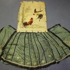 A collection of Chinese silk embroideries, late Qing dynasty, including a rectangular altar panel, worked in coloured threads with figures and flowers on a coral ground within a cream border filled with foliate roundels, 47cm x 203cm, and a rectangular wall hanging, worked in shades of blue thread with peonies and butterflies on a cream ground, approx 176cm x 115cm (faults).