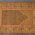 A Chinese yellow silk pleated apron skirt, late Qing dynasty, worked in coloured threads with panels of butterflies and flowers, length 87cm, together with a silk embroidered panel and a mat.
