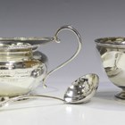 An Elizabeth II silver two-handled sugar bowl with gadrooned rim, presentation inscribed, London 1960 by Garrard & Co, height 8cm, together with another silver sugar bowl with fluted decoration, London 1914 by Harrison Brothers & Howson, diameter 11.4cm, and a silver sifter spoon, total weight 355g.