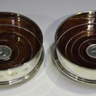 A pair of Elizabeth II silver circular wine coasters, each with turned wooden base, Sheffield 2000 by Ari D. Norman, diameter 12.5cm.