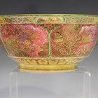 A Wedgwood lustre Daventry pattern Imperial bowl, 1920s, designed by Daisy Makeig-Jones, with ruby exterior and orange interior, black printed Portland vase mark to base, diameter 23.5cm.