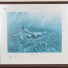 Terence Cuneo - 'Mosquito MkVI', late 20th century colour print, signed by the artist and Leonard Cheshire and editioned 304/850 in pencil, 47.5cm x 55cm, within a gilt frame, together with four further prints of aviation interest, including two after Robert Taylor one signed by Robert Roland Stanford Tuck, the other signed by Leonard Cheshire.