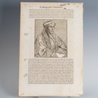 BREVIARY, in Latin. [Manuscript leaf possibly from a Breviary. N.p: but Italy: N.d: but 15th century.] 1 paper leaf (200 x 153mm.) 24 lines recto and verso in double-columns of black and red ink with four double-line red, green and blue initials heightened with gold and verso 3 double-line initials in red, blue and green, also heightened with gold. (Faint spotting to upper margin.) Contained within a modern mount displaying recto only (minor soiling). Provenance: 'Folio Society' (label verso the mount, stock number 'MS 2094'. - And a further three disbound leaves (including a leaf from 'Biblia latina mit postilla litteralis von Nicolaus de Lyra', published in Strasbourg by Johannes Gruninger in 1492, loose-leaf, and a leaf from André Thevet's 'Cosmographie Universelle', 1575, with a woodcut illustration of Erasmus, loose-leaf) (4).