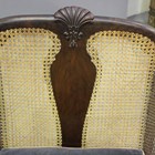 An early 20th century burr walnut three-piece bergère suite, comprising a settee, height 86cm, width 165cm, depth 88cm, and a pair of armchairs, height 86cm, width 76cm, depth 88cm.