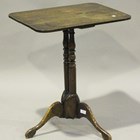 A 19th century primitive ash and mahogany wine table, raised on twin columns and tripod legs, height 70cm, width 60cm, depth 44cm, together with a George III oak bowfront hanging corner cabinet, height 94cm, width 58cm.