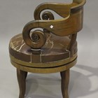 A 19th century mahogany tub back revolving desk chair with finely carved scrolling arm supports above a brown leather seat, height 82cm, width 57cm (faults to leather).