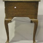 A George III provincial oak lowboy, fitted with three drawers, on cabriole legs, height 74cm, width 73cm, depth 48cm.