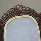 A late Victorian walnut showframe salon armchair, upholstered in blue velour, height 93cm, width 63cm, together with a late Victorian showframe salon chair, upholstered in cream fabric, height 94cm, width 58cm.