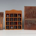 A collection of photogravure copper printing blocks, mainly portraits, other printing blocks and a group of letter blocks.