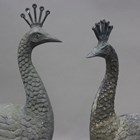 A pair of late 20th century cast metal garden models of peacocks, height 89cm.