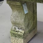 A late 20th century cast composition stone garden seat, the substantial rectangular top on shaped supports, height 45cm, width 137cm, depth 40cm.