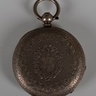An A. Mathey silver cased keywind open-faced lady's fob watch with signed gilt jewelled cylinder movement, the inner and outer case back interiors detailed 'Fine Silver 46845', the signed engine turned silvered dial with gilt Roman numerals, the case with engraved decoration, case diameter 3.7cm, total weight 36g, with a key.