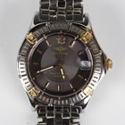 A Breitling Perpetuel Sirius stainless steel and 18ct gold cased lady's bracelet wristwatch, Ref. B62022, with Quartz movement, the signed grey dial with gilt baton hour markers and date aperture, the signed case back detailed 'B62022' over '2736', the bracelet detailed 'Sirius 0394', with signed fold-over clasp, case diameter 3.1cm.