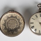 A George IV silver pair cased keywind open-faced gentleman's pocket watch, the gilt fusee movement with a verge escapement, detailed 'Kelvey Gainsboro 9560', the enamelled dial with black Roman numerals, Birmingham 1828, outer case diameter 5.5cm, with seven watch papers.