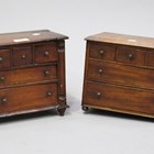 A Victorian mahogany diminutive table-top chest of drawers, height 21.5cm, width 25cm, depth 14.5cm, together with a similar chest, height 21.5cm, width 27cm, depth 13cm.