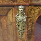 A mid-Victorian burr walnut and foliate inlaid breakfront side cabinet with applied cast gilt metal mounts, height 107cm, width 181cm, depth 39cm (some faults to veneer).