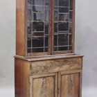 A George III mahogany bookcase cabinet, the moulded pediment above lattice glazed doors, raised on bracket feet, height 23cm, width 124cm, depth 58cm (faults).