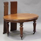 A mid-Victorian mahogany extending dining table, the oval top with two extra leaves, on reeded baluster legs, height 71.5cm, extended length 197cm, depth 121cm.