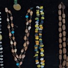 A group of early/mid-20th century Middle Eastern and North African jewellery, including glass, mother-of-pearl and wooden bead necklaces, mounted within an ebonized case.