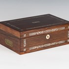 A Victorian rosewood and mother-of-pearl inlaid writing slope, width 35cm.