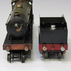 A Bowman gauge O spirit fired 4-4-0 locomotive, finished in green and black livery (fired), and tender, finished in black livery.