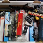 A Tri-ang gauge OO R.323 Operating Royal Mail Coach Set, boxed, together with a collection of Lima and Mainline coaches, goods rolling stock, rail cars and three locomotives, the majority boxed (some playwear, some boxes creased and scuffed).